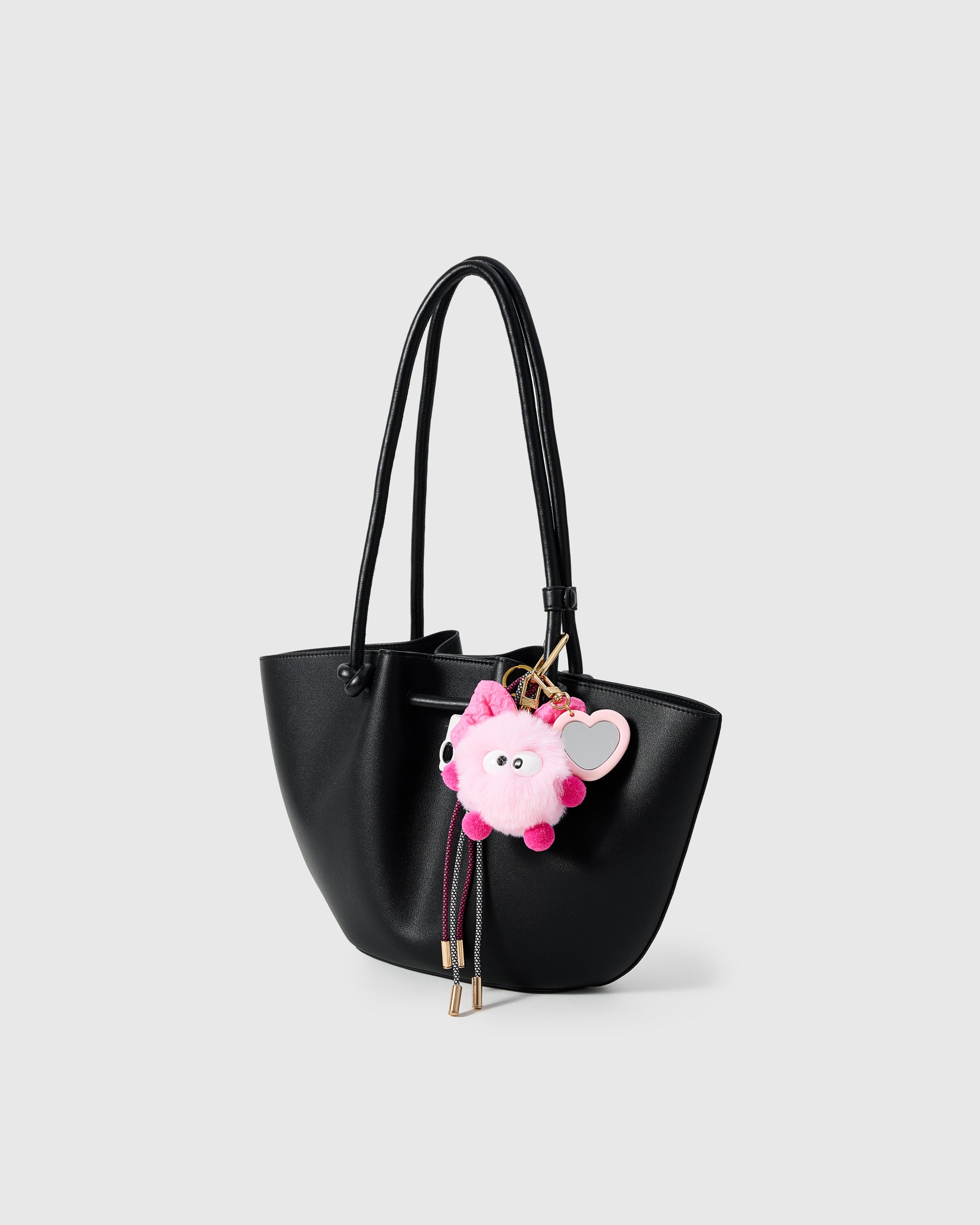 Bubblegum pop, clipped. Big-eyed fluff, a glossy heart mirror, and a tiny camera turn your carry into a compliment magnet—one clip and go.