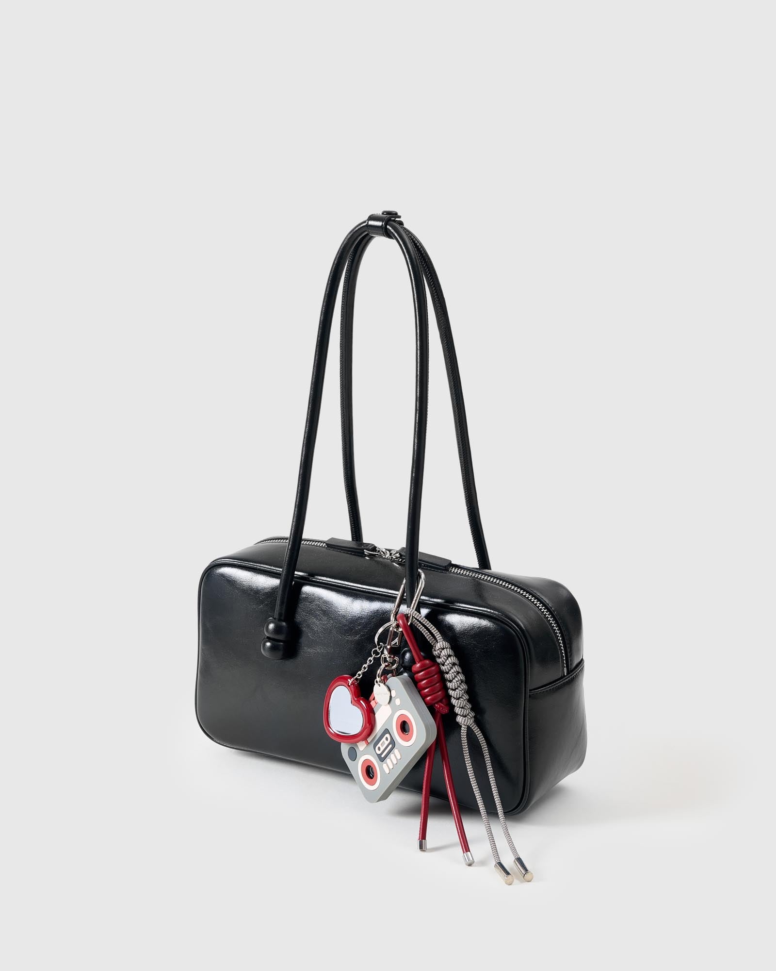 The CASSETTE TAPE STACK CHARM is built for heartbreakers and hitmakers. It features a voice-recording retro boombox-style cassette charm in a playful matte finish, a glossy red heart mirror charm, and hand-tied ropes made from real leather and tech-cord paracord. Clip it on and take your soundtrack with you—because the best stories deserve a replay.