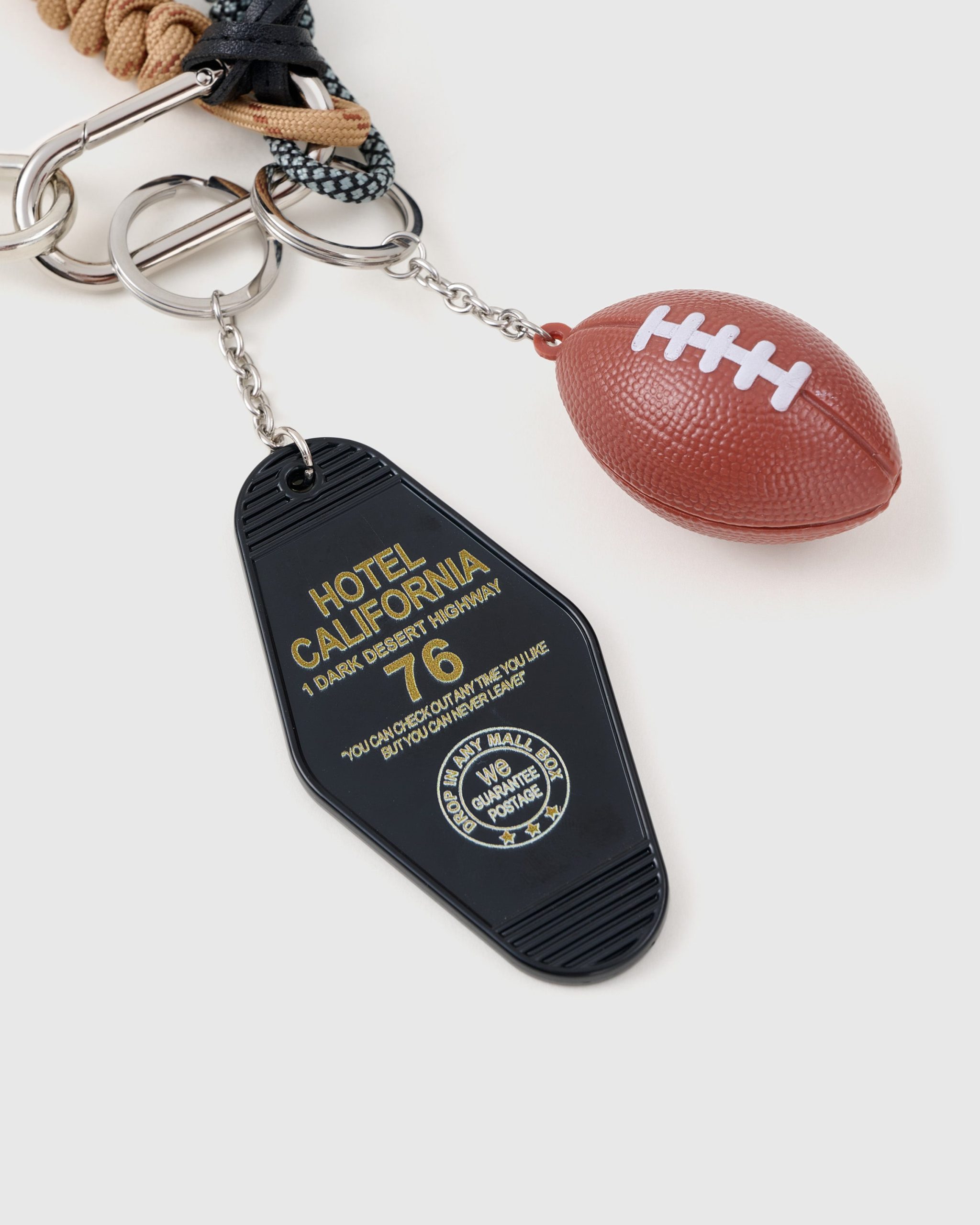 • Playful accessories: molten resin dice, rubber football, iconic Hotel California key tag