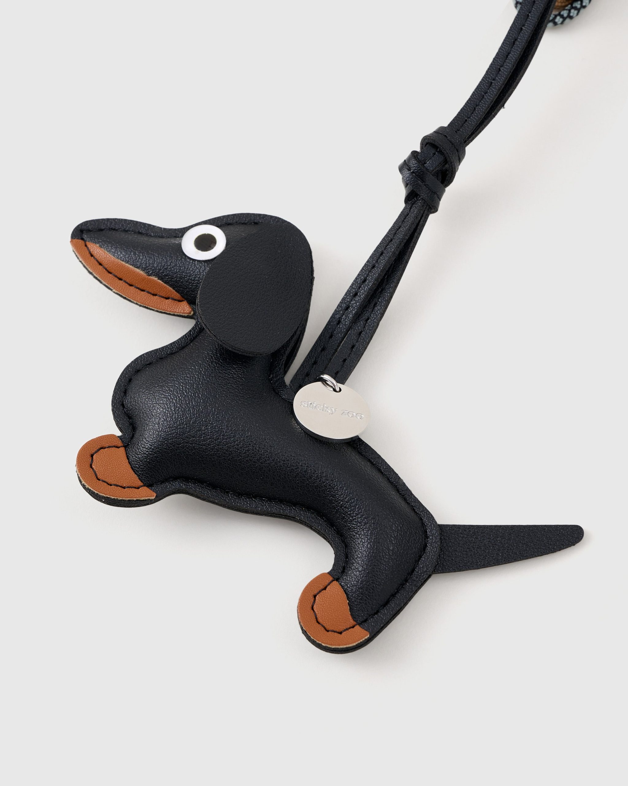 You either know the magic of a wiener dog—or you’re about to find out. The DACHSHUND DICE STACK CHARM brings bold style and playful personality wherever it hangs. Led by a striking black faux-leather dachshund, this charm stack features molten-colored gaming dice, a Hotel California key tag, and a squishy football charm. Clip it to your backpack, tote, or crossbody for an instant main-character moment.