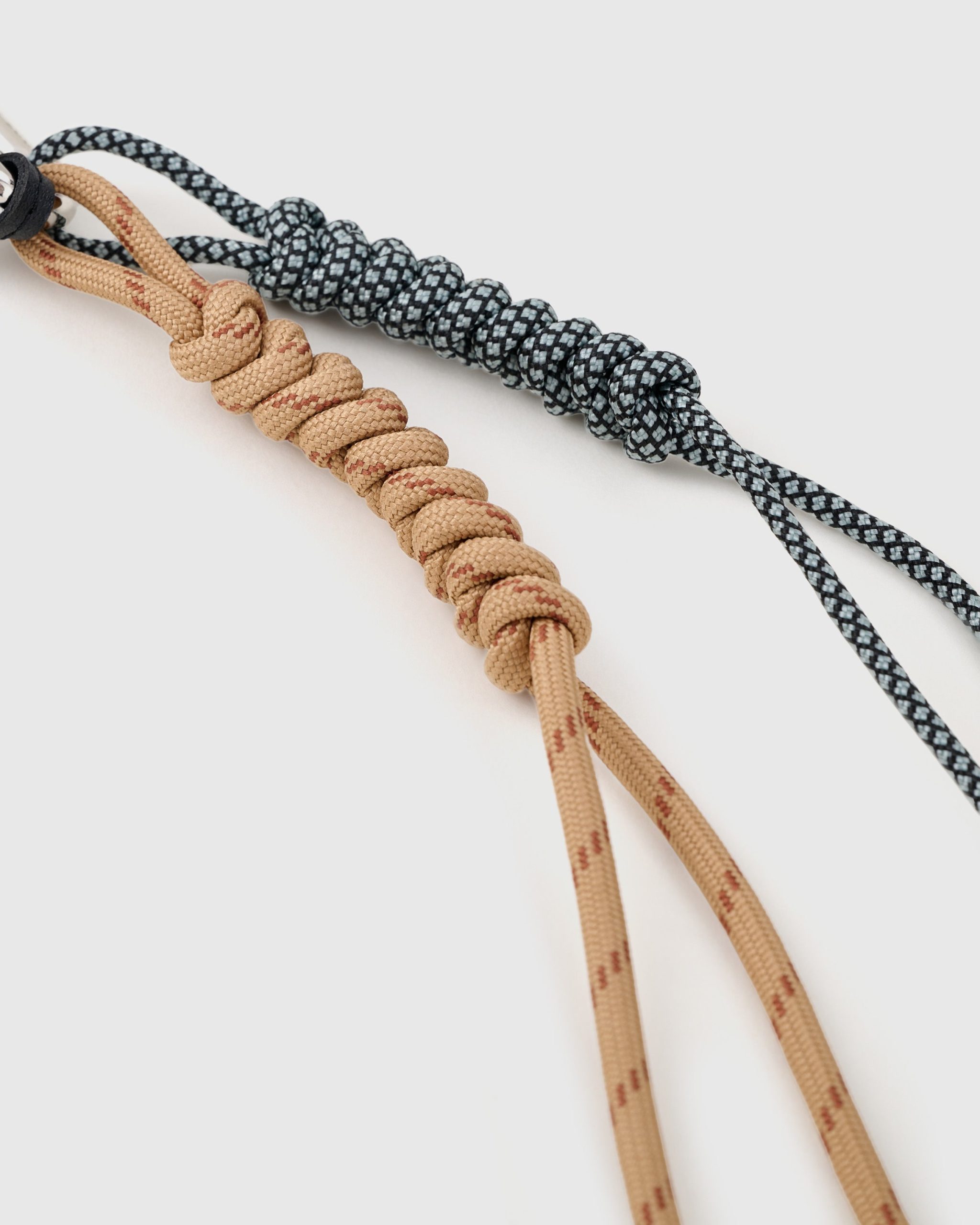 Materials Faux leather, resin dice, rubber charm, nylon paracord ropes