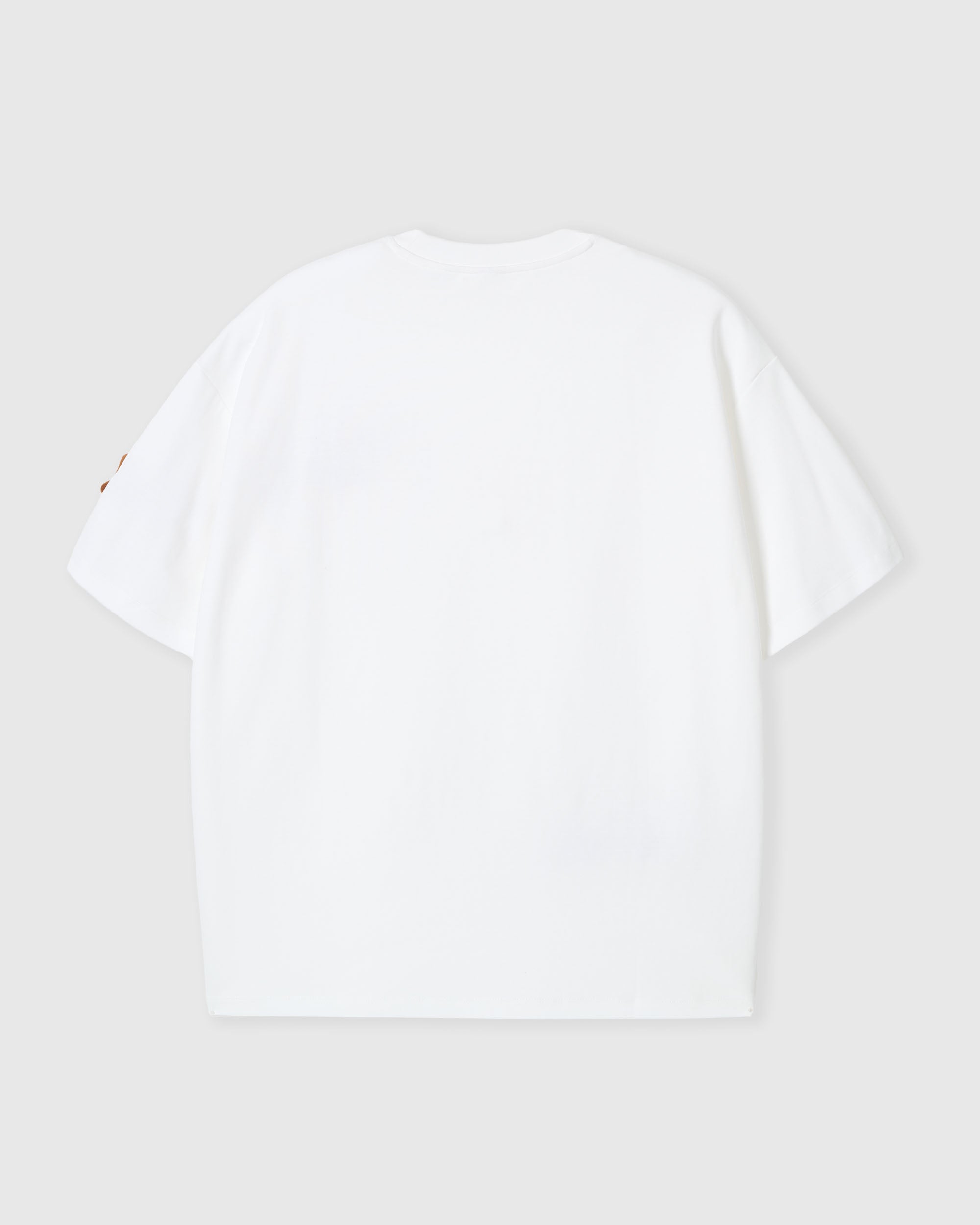 “Some T-shirts stroll. This one parades.” Three hand-sewn plush dachshunds bring joyful texture to a cool, refined silhouette—subtle from afar, irresistible up close.