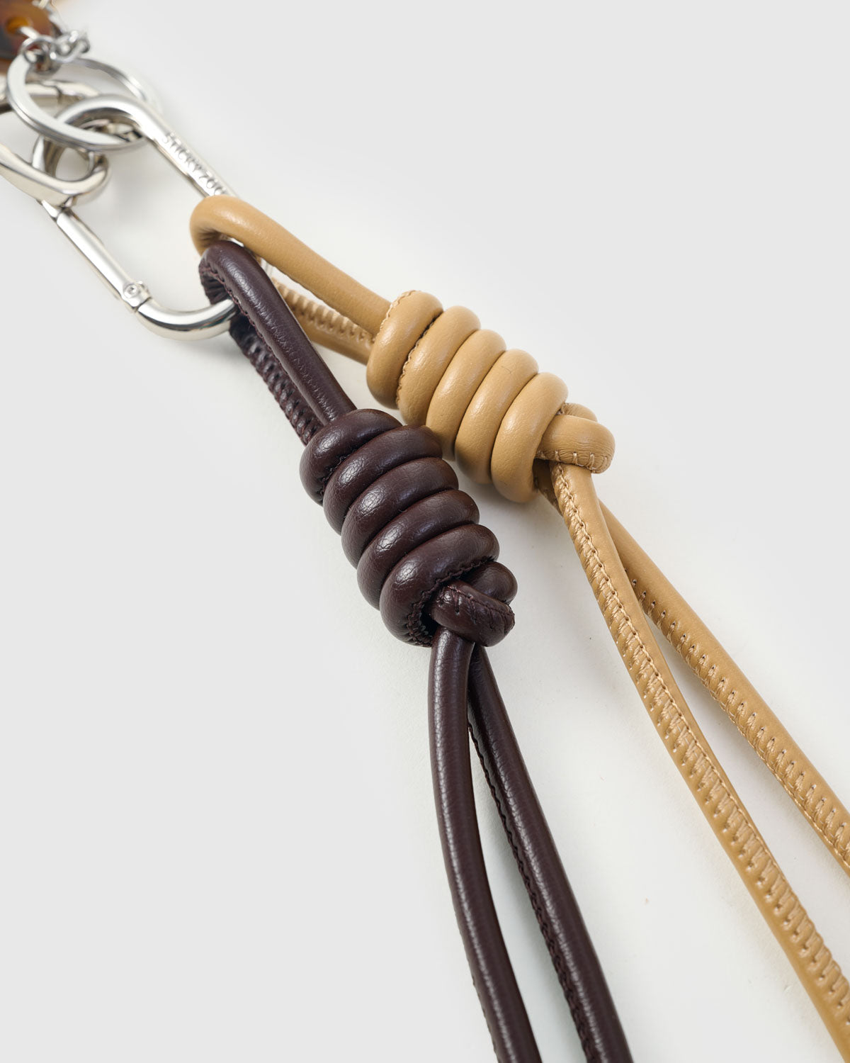 - Materials: Woven vegan-leather mascot, tortoiseshell charms, cotton loop, leather cords