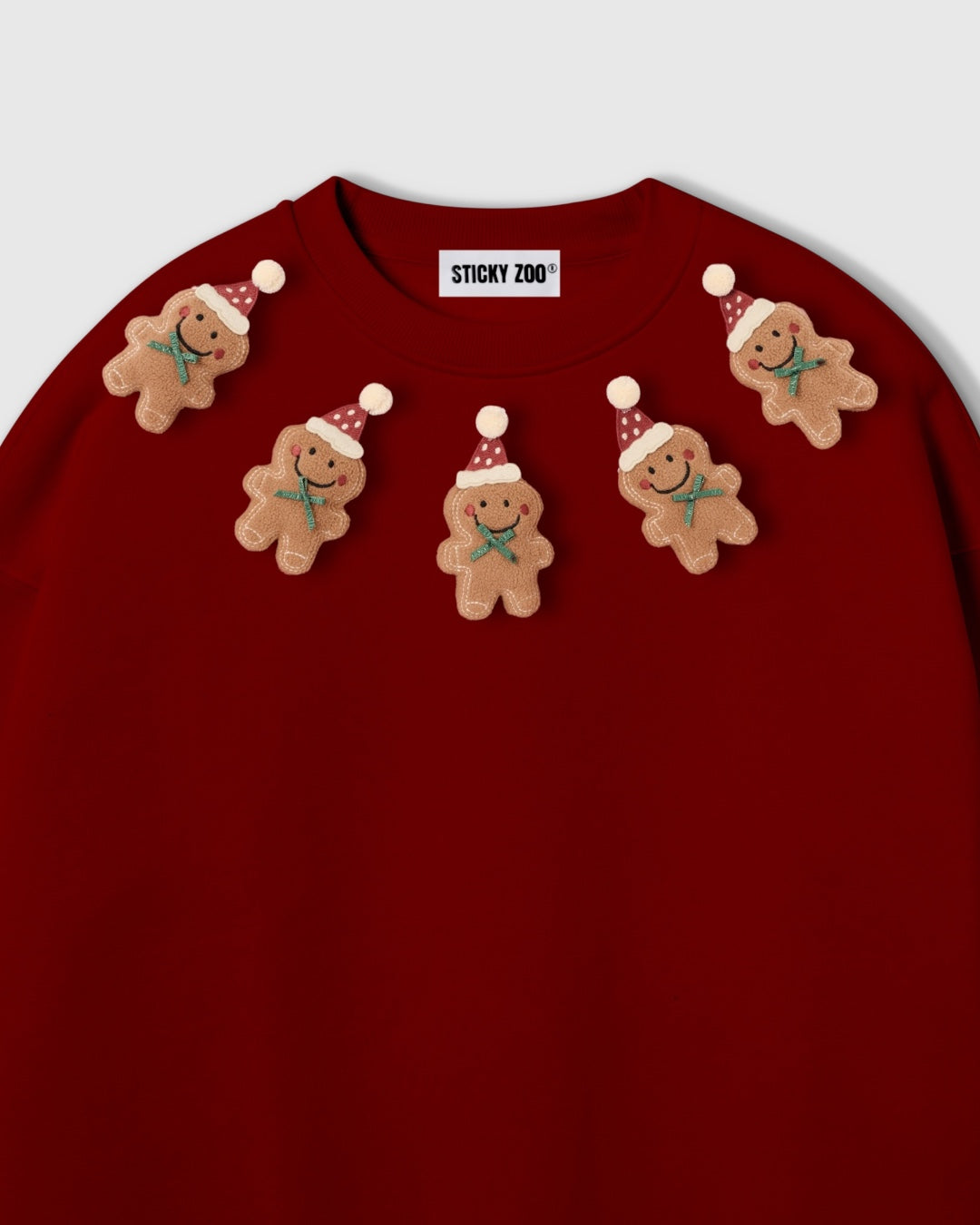 The GINGERBREAD JOY SWEATSHIRT was made for people who crave comfort that goes deeper than fabric. Crafted from dense 450gsm cotton fleece, it settles on the body with a warm, calming weight — like the feeling of stepping inside after cold air, or hearing someone you love laugh. The plush gingerbread characters bring back the tiny joys we forget to feel, stitched securely so they stay with you through every season you need softness.