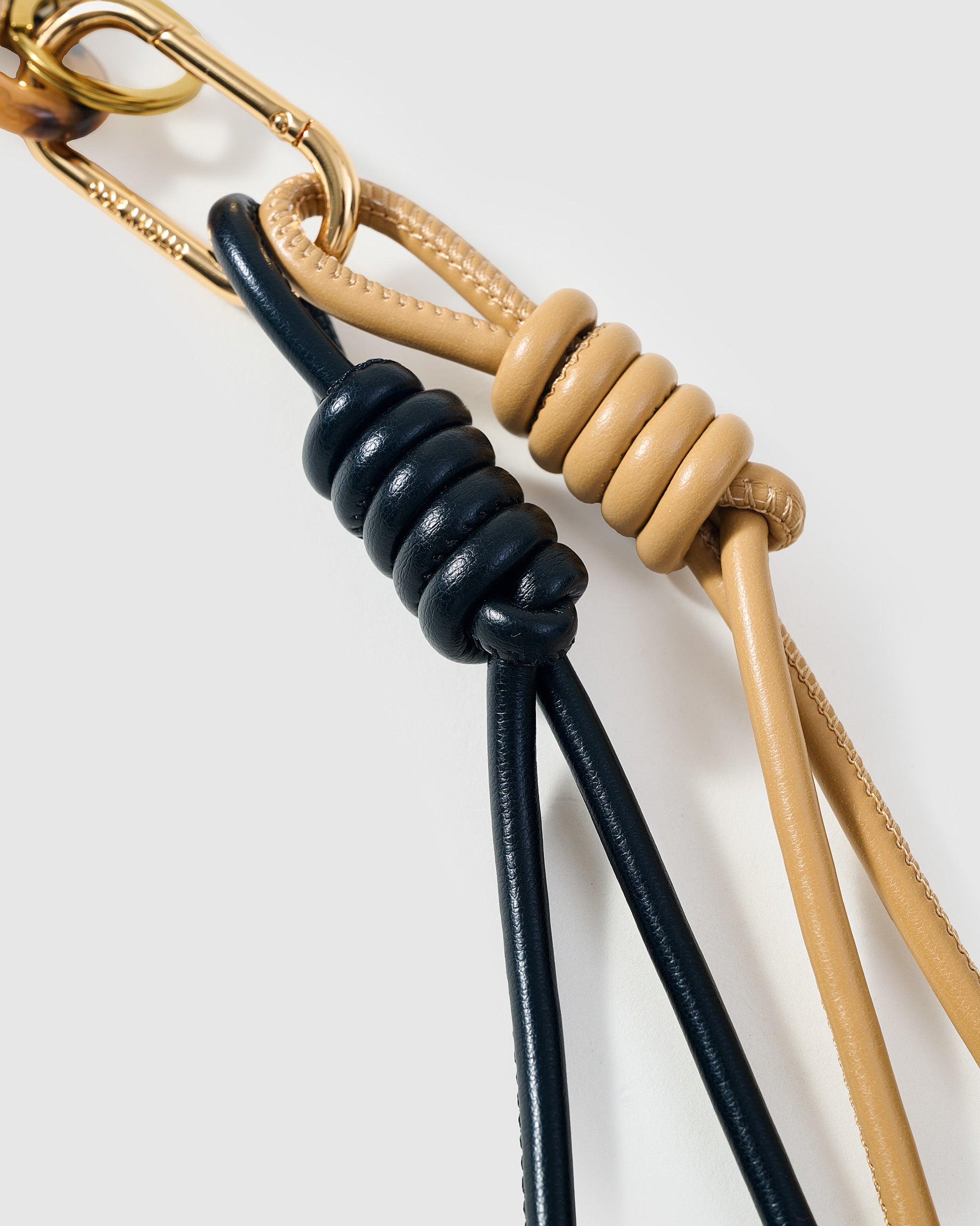 | Materials | Plush leopard-print heart; wavy black mirror charm; French Alran leather tassel cords (tan & black) |