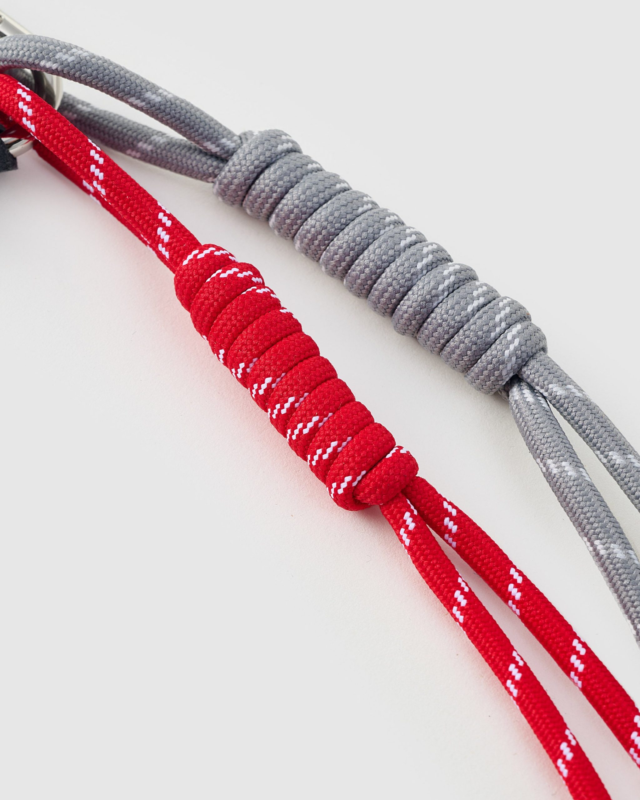 - Dual paracord ropes (red/grey) → instant movement and color pop