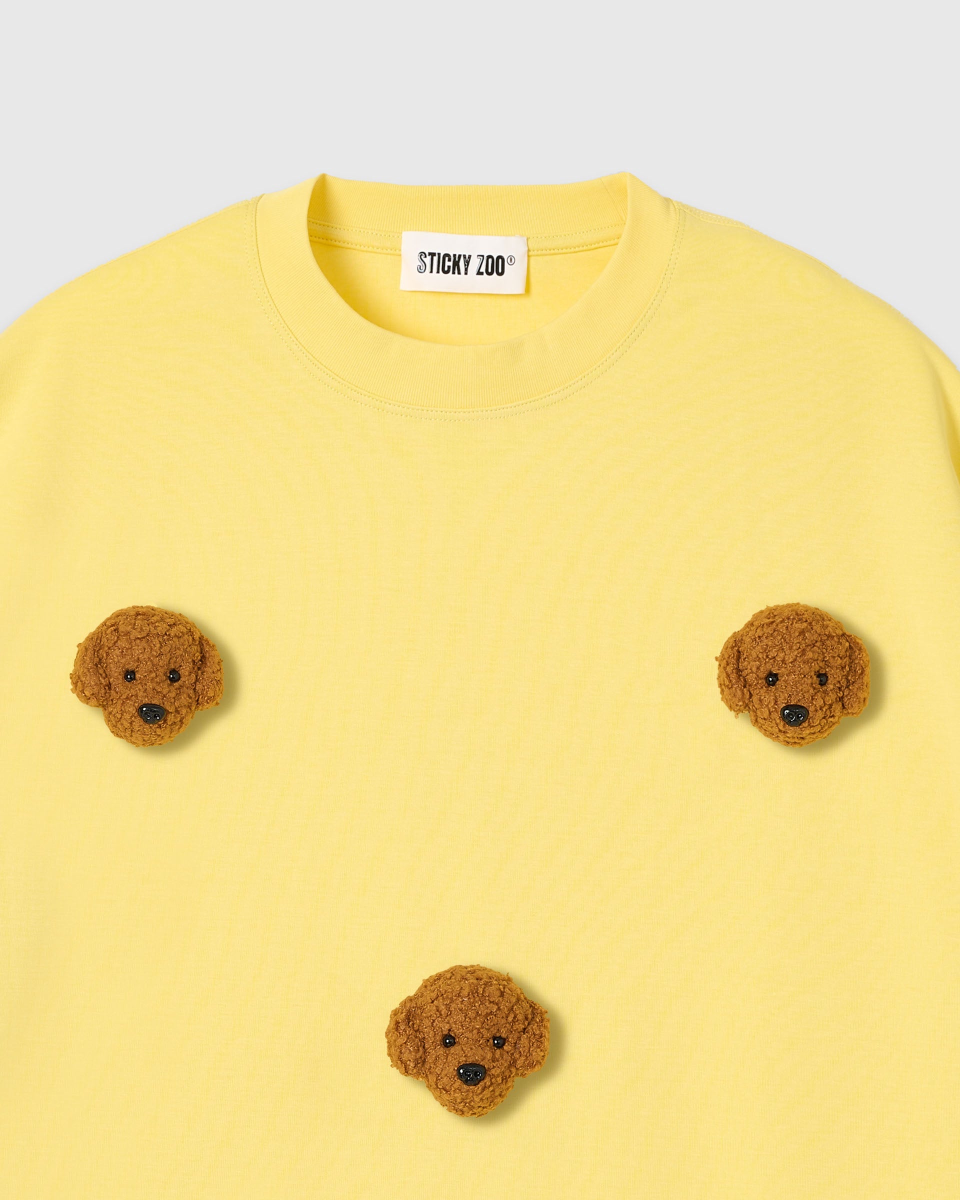 Playful by design, comforting by nature – Soft, plush poodle faces sit neatly across the chest and sleeves, each one slightly unique, like a tiny friend you carry through the day. The modern oversized silhouette keeps the vibe effortless and flattering while the dense cotton keeps its shape.
