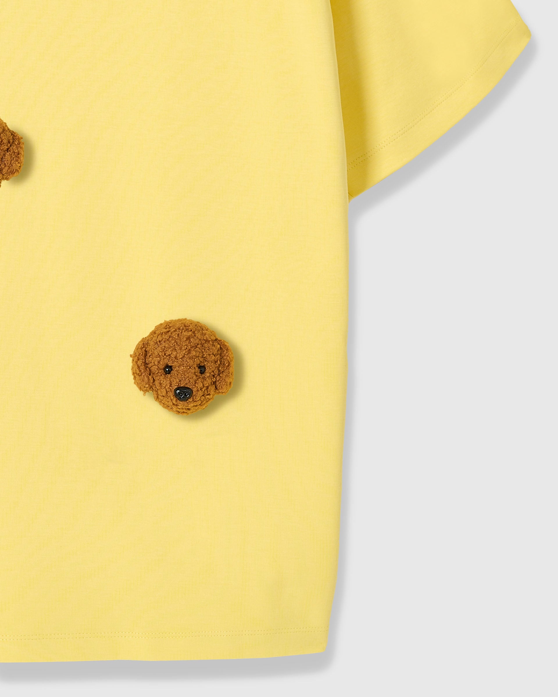 The POODLE PARADE T-SHIRT wraps cheerful character in serious comfort. Crafted from premium 230gsm cool-touch cotton, it drapes with an easy, relaxed feel while the plush poodle faces—each individually handmade and stitched—bring warmth and whimsy to your look. It’s the kind of piece people notice, then smile at.