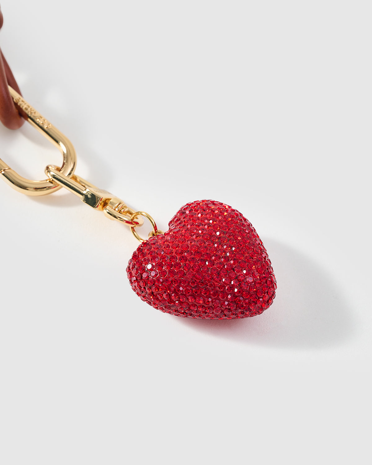 Materials French Alran leather charm, crystal heart pendant, gold-plated hardware