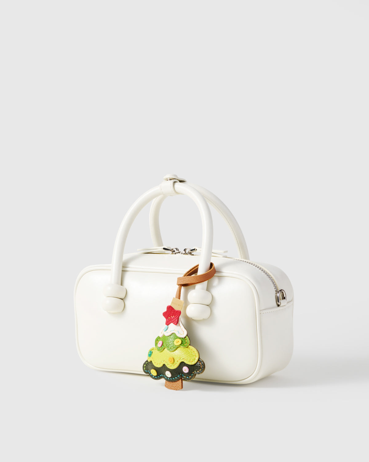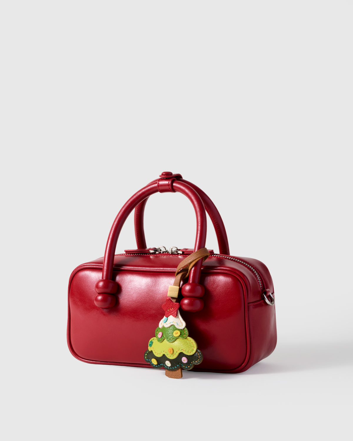 Joy, stitched by hand. The MERRY TREE CHARM brings festive cheer to your bag—bright, playful, and handmade to celebrate the season in color and craft.